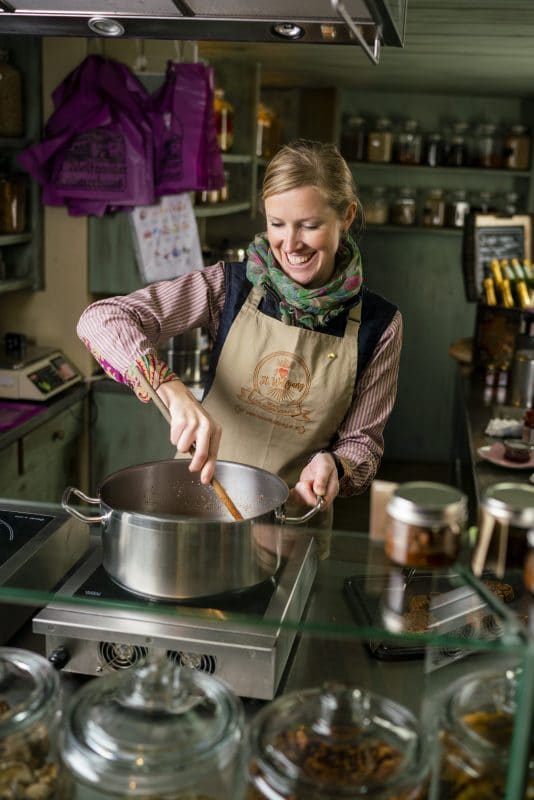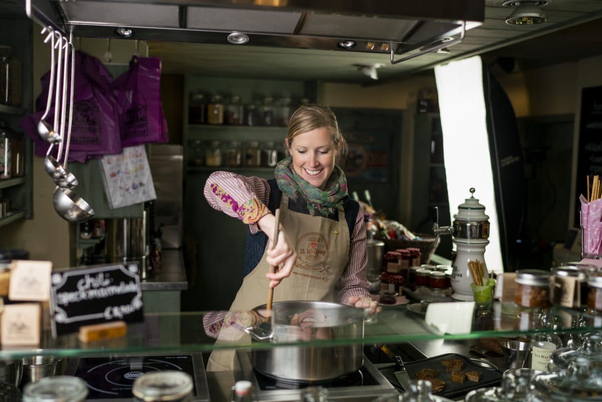 Elizabeth Eichenauer zögert erst, denn es ist ein Familienrezept, das sie nicht verraten möchte. Auch sorgt sie sich um ihre Schauküche, wo unzählige Gläser zu Bruch gehen könnten, sollte es beim Drehen zu einem Unfall kommen! Es wäre jammerschade um alle Mühe, Liebe und Sorgfalt, die sie in ihre Produkte steckt.