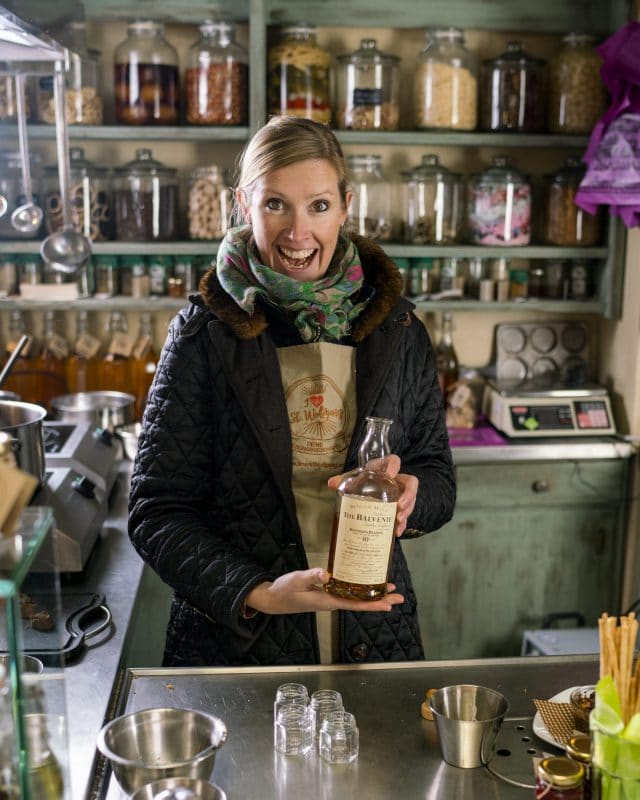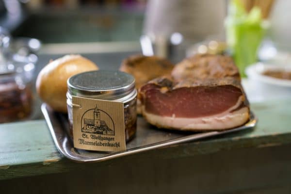 Das historische Zentrum ist die gemütliche Flaniermeile St. Wolfgangs. Silvia Schneider schlendert zwischen pittoresken Häusern, nette Lokale und hübsche Geschäfte vermitteln angenehmes Flair. Da weckt eine Ladeninschrift ihre Neugierde. Der Zufall hat sie zur „Marmeladenkuchl“ geführt. Sofort fühlt sie sich in einen Krämerladen aus Großmutters Zeiten versetzt. Sehnsüchte werden wach beim Anblick der hölzernen Regale, in denen bunt leuchtende Gläser stehen. Alle sind fein säuberlich etikettiert und tragen auf dem Deckel das typische gemusterte